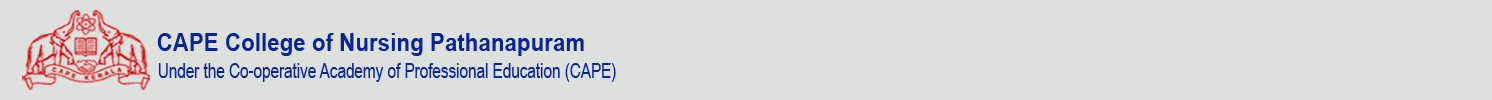 The Co-operative Academy of Professional Education (Kerala) was formed to establish Educational Institutions in various professional fields to provide facilities for Education and Training. The Co-operative Academy of Professional Education is promoted by the Co-operation Department of the Government of Kerala and is an autonomous society under Government of Kerala. The Society is registered under the Travancore-Cochin Literary, Scientific and Charitable Societies Act, 1955 on the basis of the Memorandum of Association and the Rules as approved by the Government of Kerala. CAPE College of Nursing is under the Co-operative Academy of Professional Education(CAPE).